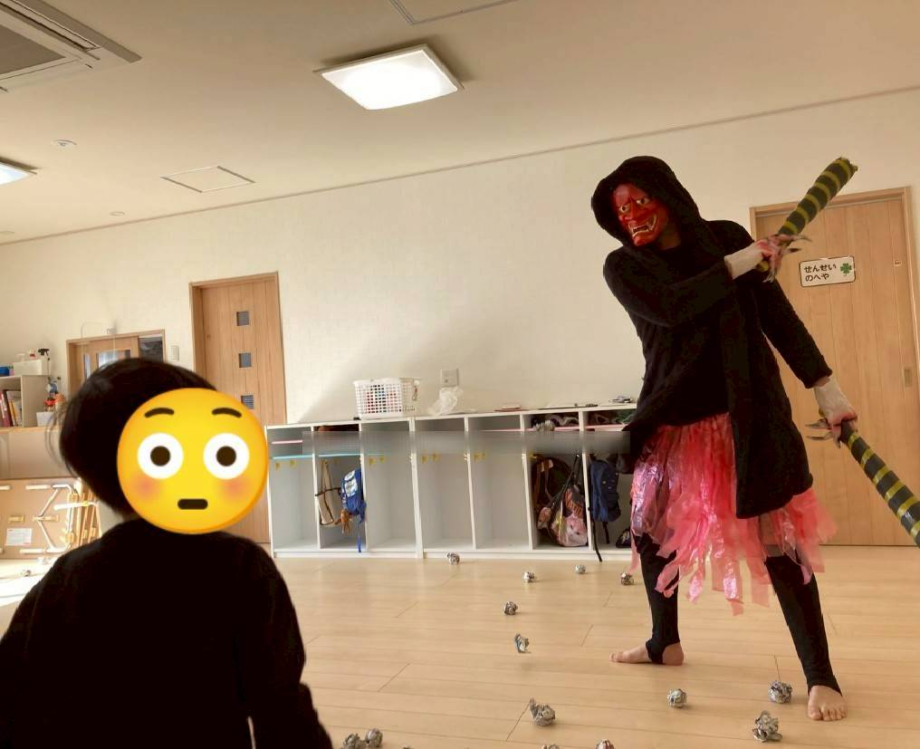 あっという間に2月となり、節分に今年は赤鬼さんが登場してくれました!みんなで新聞紙ボールで退治したけど、ちょっと怖かったよ~(笑)